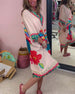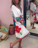 Avslappnad blommig rund halsad långärmad ihålig tröja