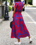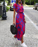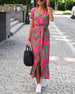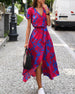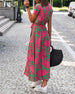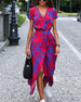 Casual klänning med leopard och färgglatt tryck och djupt V