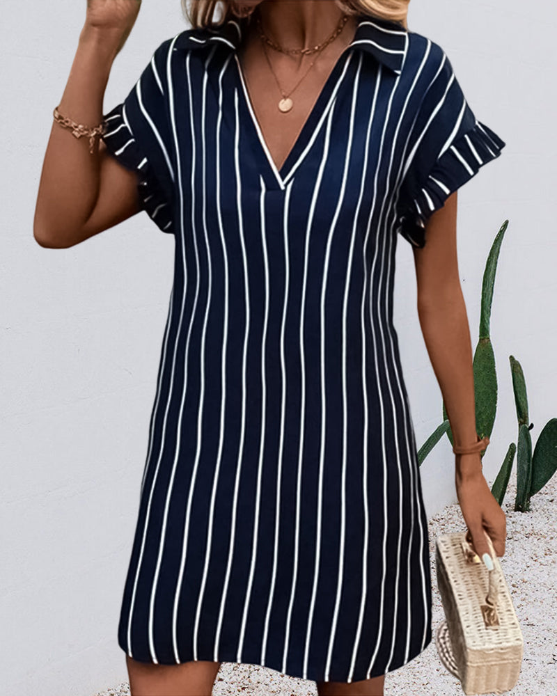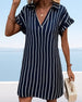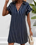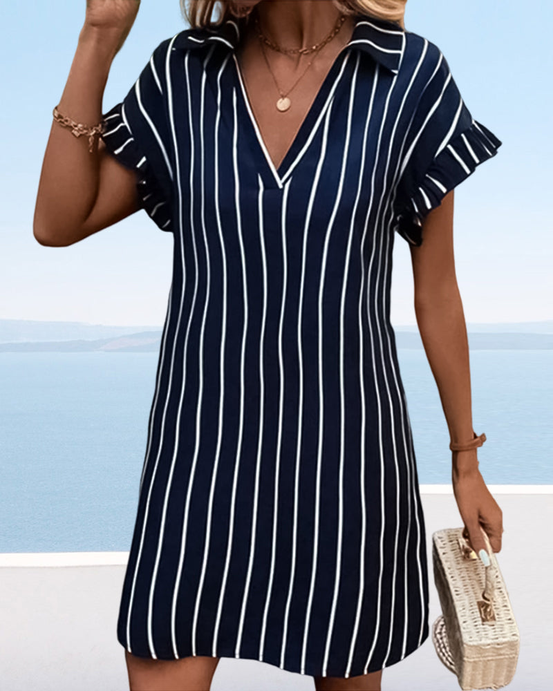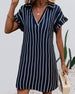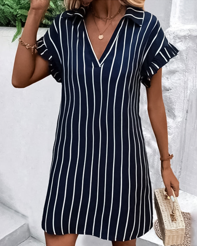 Klänning Kort Ärms Krage Enfärgad Knappar