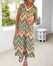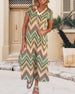 V-ringad klänning med delad ärm för semestertryck