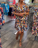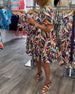 Casual klänning med leopard och färgglatt tryck och djupt V