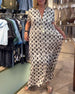 Avslappnad leopardmönstrad ficka med rund hals och breda byxor