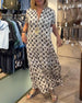 Casual klänning med leopard och färgglatt tryck och djupt V