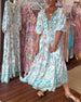 Casual klänning med leopard och färgglatt tryck och djupt V